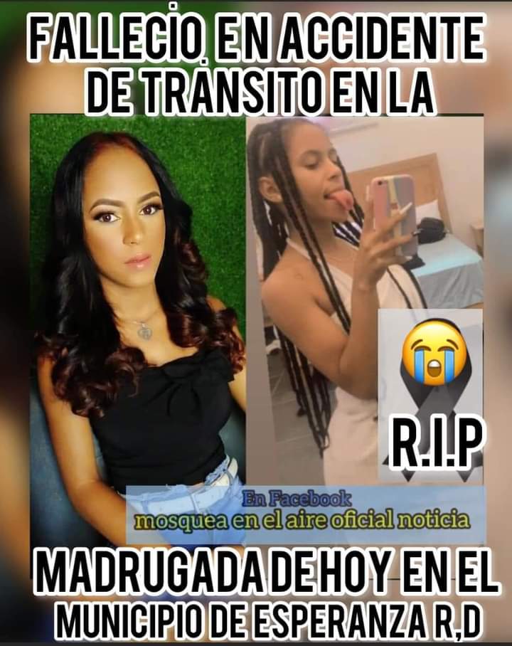 n la madrugada de hoy domingo siendo la 2:45 am falleció en accidente de tránsito la joven Leidy Peralta tras sufrí trauma craneo cefálico severo quien impactó con otro motor frente a frente en la calle María Trinidad Sánchez del dicho municipio de Esperanza VALVERDE próximo al banco popular.